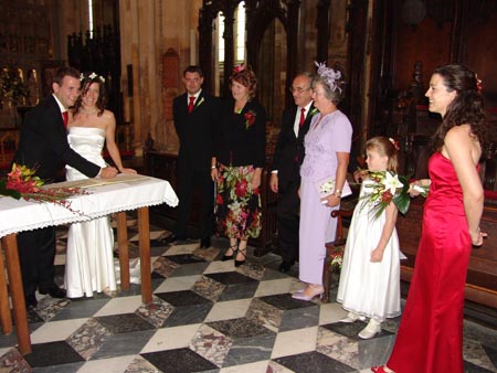 Simon's brother Jonathan married Tina Geogehan on 17th September 2005. During the service at Beverley Minster, a candle was lit by Simon's parents in remembrance of him. Simon was due to have been Best Man at the wedding along with Maxwell, who performed his duties admirably and gave a rather funny speech. All weddings are good, but this one was fantastic. After the Minster the wedding party and guests returned to the Murden family home for a slap up Thai meal and a reception that went well on into the following day and evening. Simon's bar (purpose built in the garden) raised over £500 for the overseas projects that he had supported. The wedding also made the front of our local Newspaper which featured an interview with Jonathan.